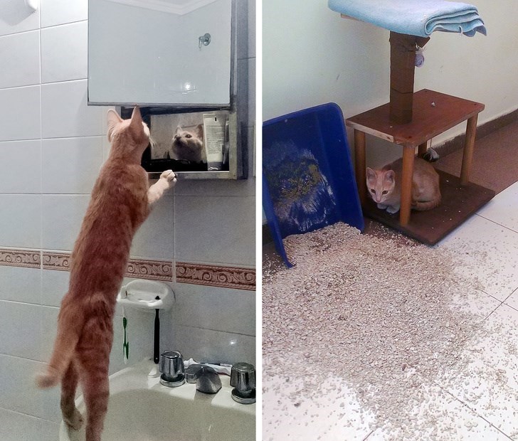 “My cat looks at himself in the mirror and if nobody pays him any attention, he starts tossing things over.”