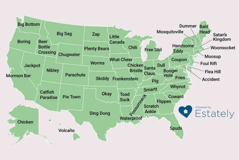This Map Shows The Weirdest Town Names In Each State