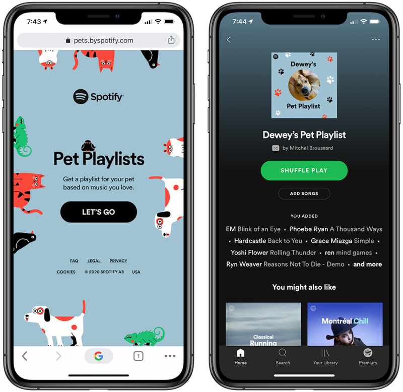 The music streaming service was inspired to create Pet Playlists after conducting a global online survey