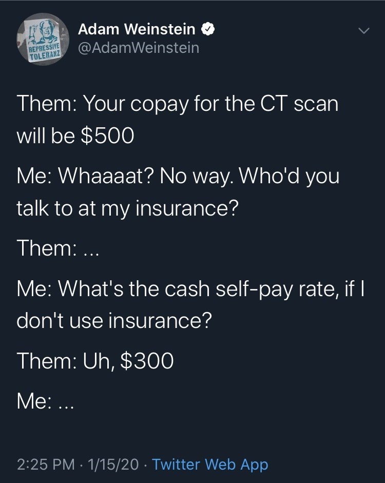 Twitter user @AdamWeinstein went ahead and detailed his unbelievably frustrating experience trying to navigate using his health insurance. He ends up having to jump through all kinds of frustrating hoops. Definitely gives off the impression that the insurance is doing anything but helping his cause.