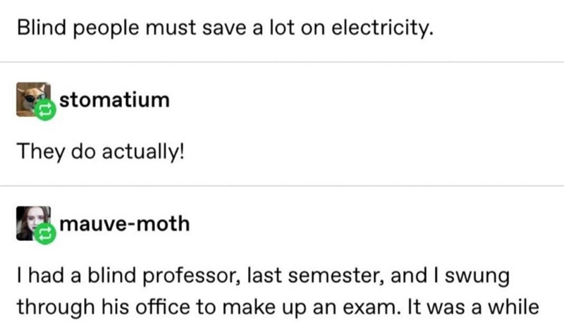 This quick and wholesome Tumblr post does a great job at highlighting the different world perspectives of people that are blind and deaf. As it turns out, deaf people have accents too.