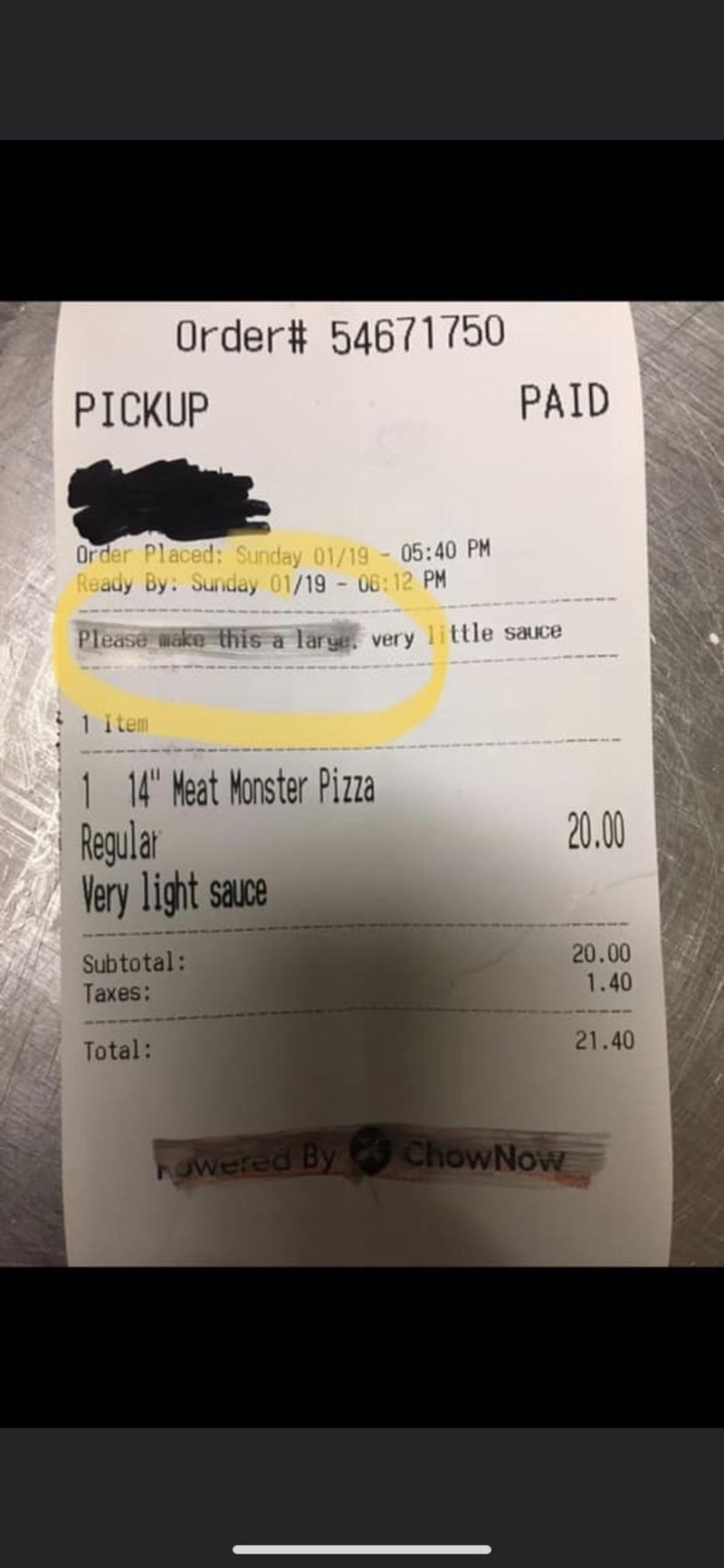 Ordering a medium and asking it to be made large.