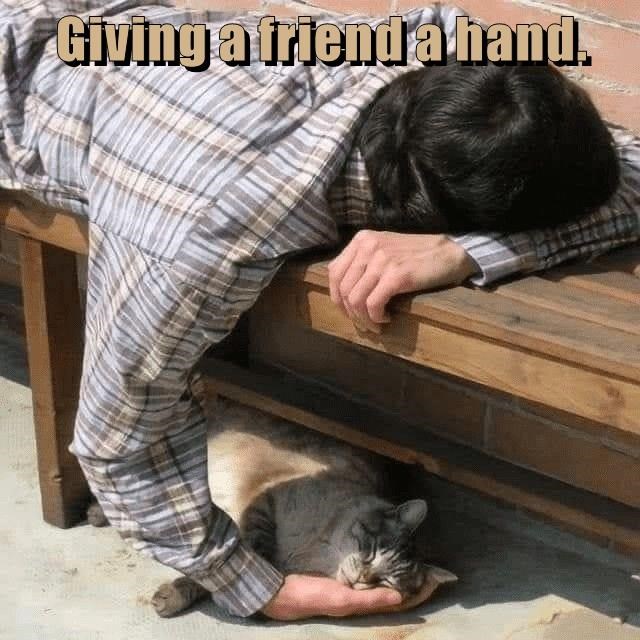 Giving a friend a hand.