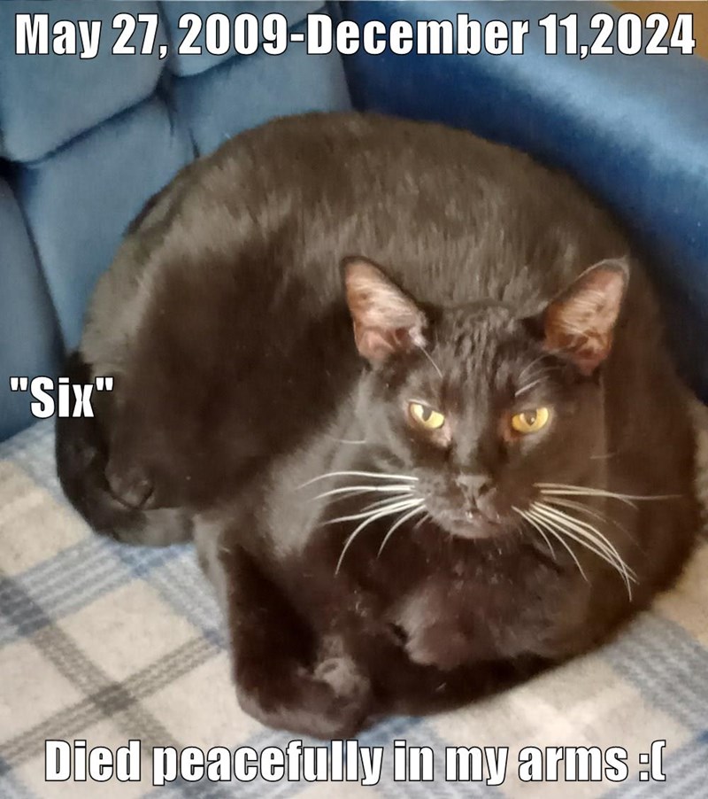 May 27, 2009-December 11,2024 "Six" Died peacefully in my arms :(