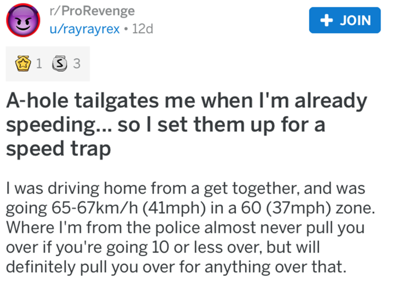 This rude tailgater got what was coming to him. Sounds like he was being a bit of a jerk on the road, and the driver decided to take matters into their own hands. They played it beautifully. By purposefully slowing down, they ignited a rage in the tailgater, which led to the tailgater driving right into a speed trap.
