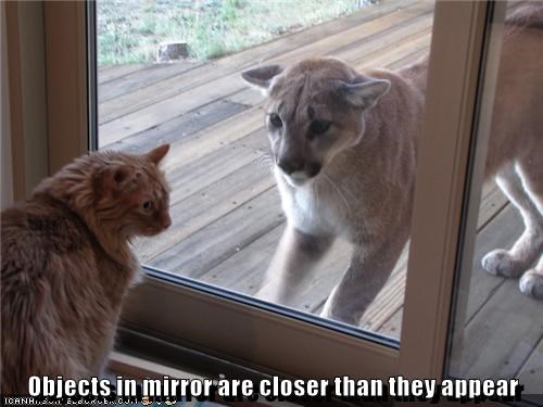 Objects in mirror are closer than they appear