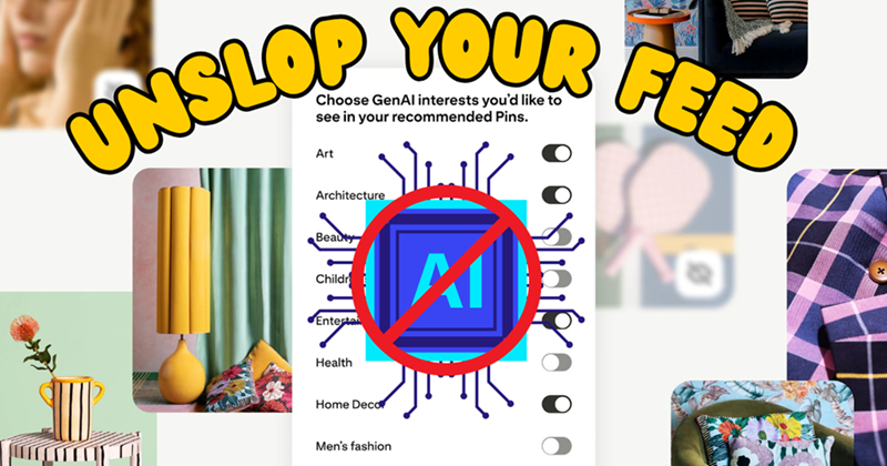 Pinterest's CTO Matt Madrigal said this is about balance - "the right mix of human creativity and AI innovation." Translation: you can finally unslop your feed.