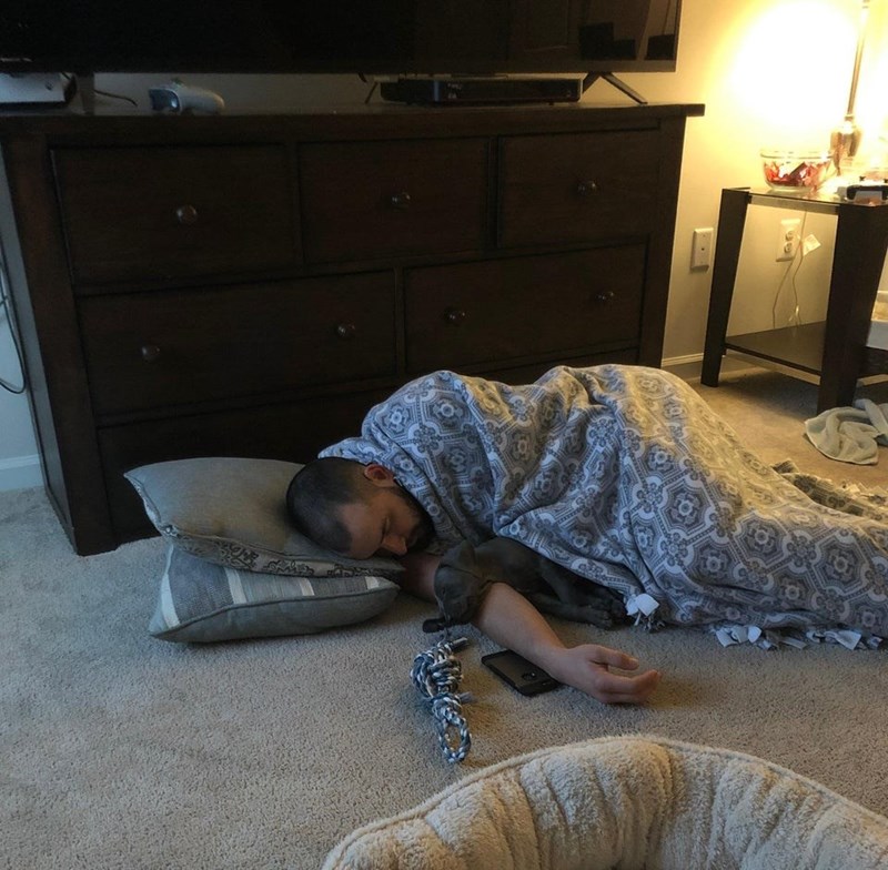 "Got a new puppy and he doesn’t like sleeping alone. Came downstairs to this"