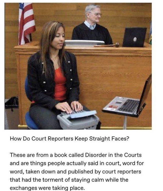 This fun thread sheds light on all the ridiculous things that court reporters overhear while on the job. It's a true wonder that they can keep a straight face. People come to court to air out all kinds of mind blowing grievances.