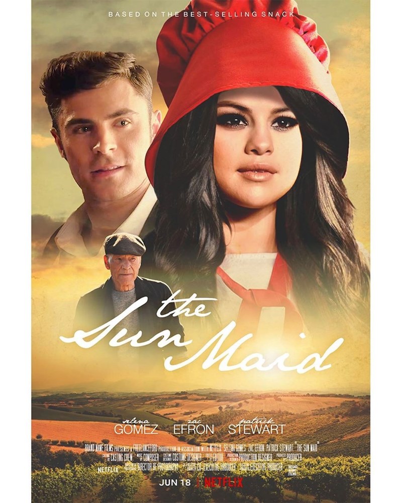 Zac Efron, Selena Gomez, and Patrick Stewart in The Sun Maid.