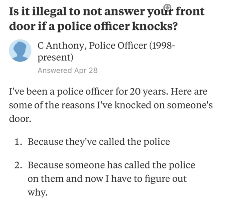 Quora Answer: Police Officer Lists Reasons For Cops At The Door