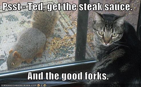 Psst - Ted, get the steak sauce. And the good forks.