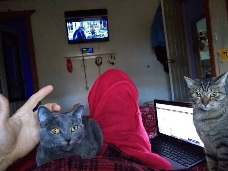 “My boyfriend who thought all cats were evil is now doing indoor rock climbing to reach her. Why? ’Cause he wanted to kiss her forehead.”