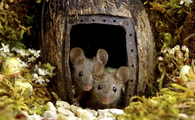 Simon Dell built miniature lg-pile houses, picnic tables for the mice -- one of which he named George.