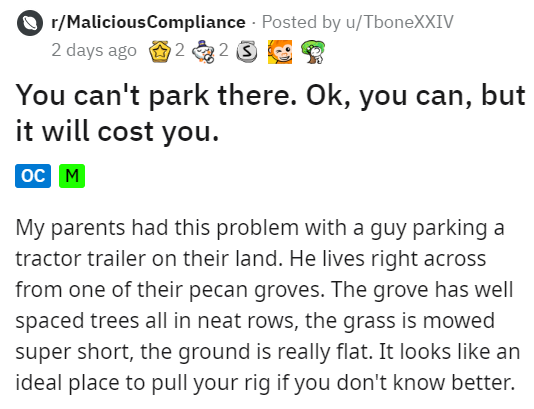 Guy Keeps Parking on Property, So Owner Starts Charging Him