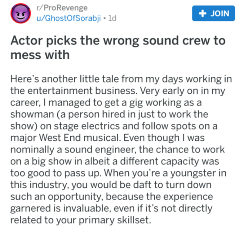 Snobby Actor Angers The Wrong Sound Crew
