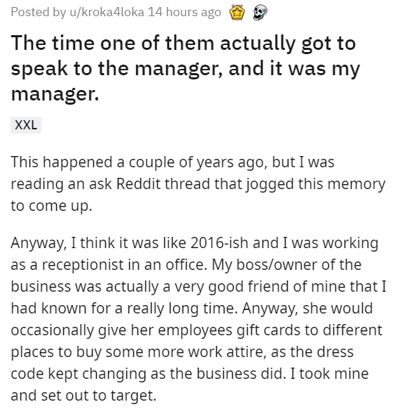 If you've ever worked retail or just exist, you've probably witnessed a frustrating entitled person going full Karen. The wild Karen's secret weapon is to demand to see a poor soul's manager, but this time, Karen's target was a fellow customer. Sometimes it doesn't work out for an overly aggressive Karen, like this tailgating Karen who got baited into a speed trap or this Karen who got humbled by a Canadian giant.