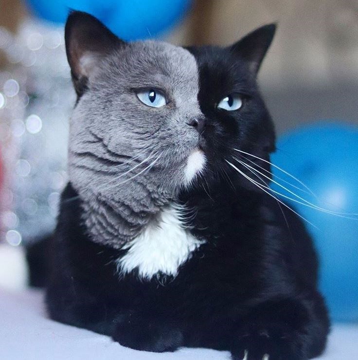 Narnia fathered a litter of kittens two years ago which resulted in kittens that were each of this split colors.