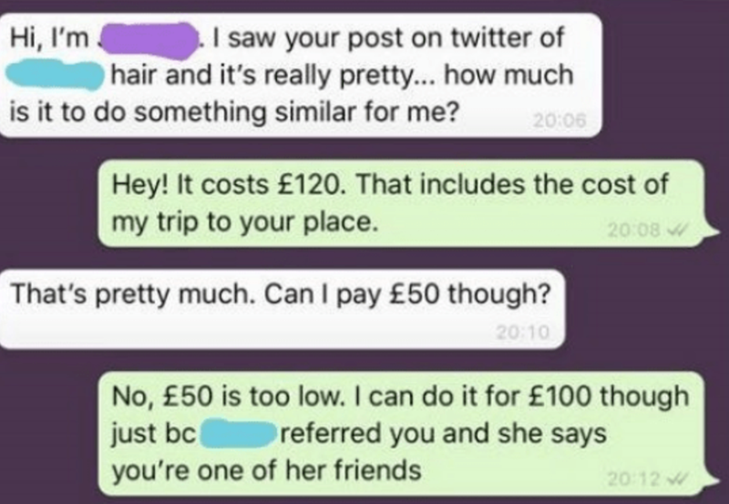 This entitled "influencer" expected a big discount on a haircut because they were rocking ten thousand followers. Um, first off, these influencers need to give it a rest. Second, ten thousand followers is nowhere close to actually being able to call yourself an influencer.