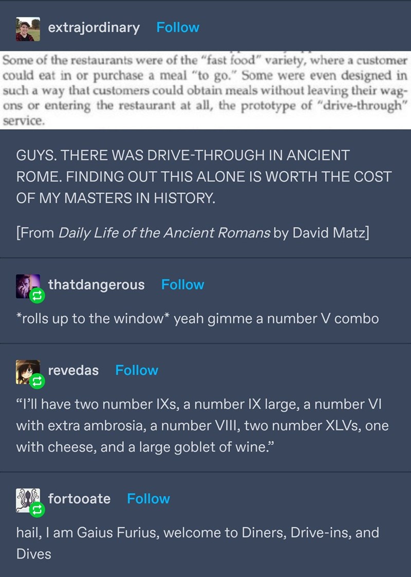 Tumblr Thread: Ancient Roman Diners Drive-Ins and Dives