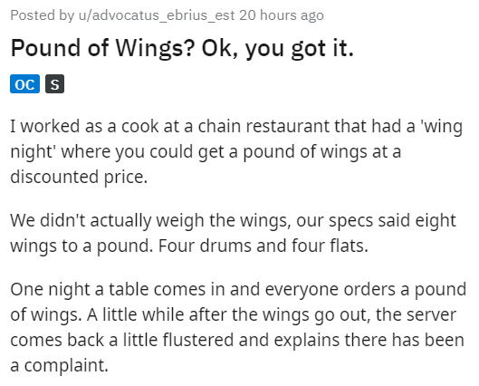 Customer Demands Exactly a Pound of Wings, Gets Less Wings