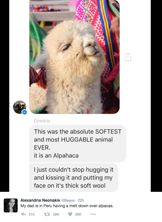 Girl's Dad Texts Her While Having Meltdown Over Adorable Alpaca, and Everyone Loves Him Now