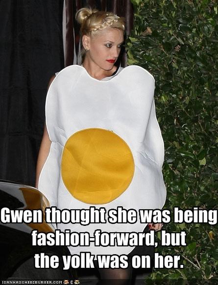 Gwen thought she was being fashion-forward, but the yolk was on her.