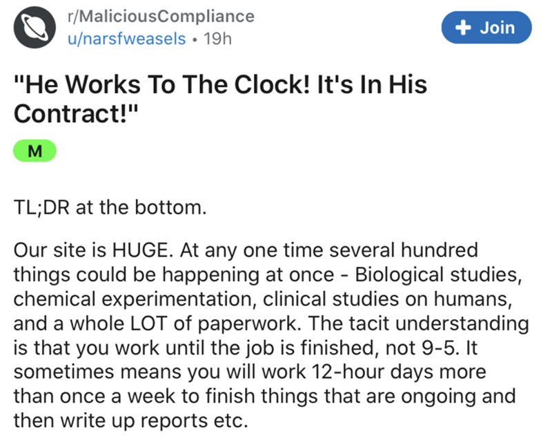 Man, oh, man, it sounds like this particular management team was terribly detached and clueless. They continued to send in uniformed representatives, as their company was proactively losing money, and wasted a whole lot of time when they could've actually resolved the issue. All that it took to set the whole thing in motion was one employee strictly following their contracted hours.
