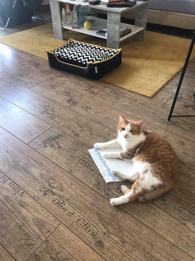 "We got him a bed, but then a paper towel fell on the floor, so nevermind"