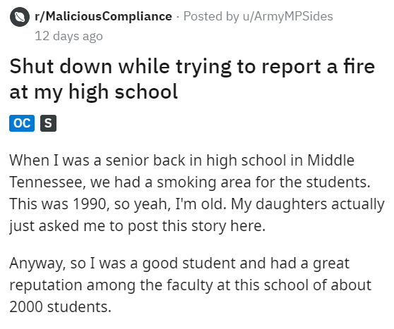 The hierarchy of school can be strange, especially when there's some miscommunication going on between staff and students. In this case, the staff didn't understand the full scope of what was going on, and had themselves an absurd situation on their hands. Here's a tumblr story of a teacher who underestimated their students in a social experiment, and here are some "that's amazing, but please stop" school stories.