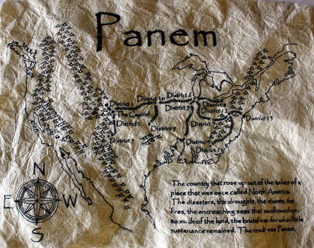 It's a post-apocalyptic version of North America, which is divided into districts and ruled by an ultra-posh capitol located in what was once the Rocky Mountains. Katniss, our protagonist, lives in District 12. -