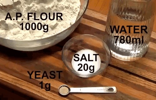 This rustic bread is simple to make and it requires no kneading! This recipe makes two loaves of bread. To make it you'll need the following: