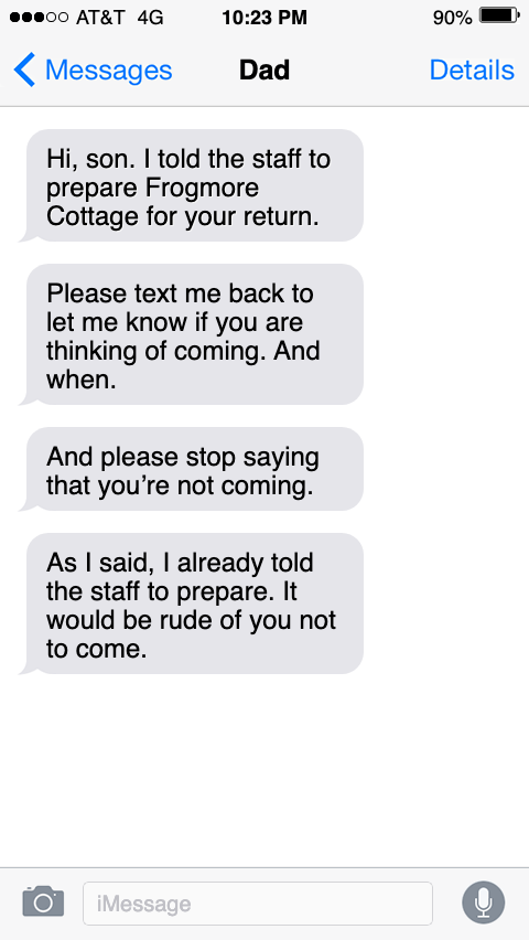 Text from Camilla, Duchess of Cornwall (aka Prince Charles' wife)