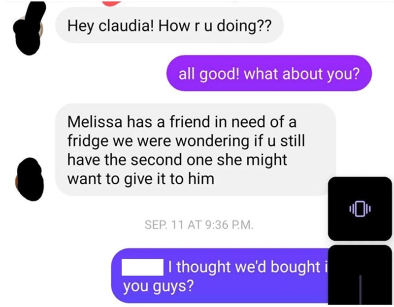 Woman Sells Fridge To Old Roomies, Demands Fridge Back A Year Later
