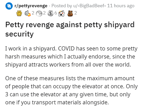 Most of us would agree that safety rules are important to follow. But when rules are enforced not on their utility but on the satisfactions of the people getting to abuse them, that's where people get petty. For another story of pettiness, here's a coworker who complained too much about free pizza and encouraged a petty feast.