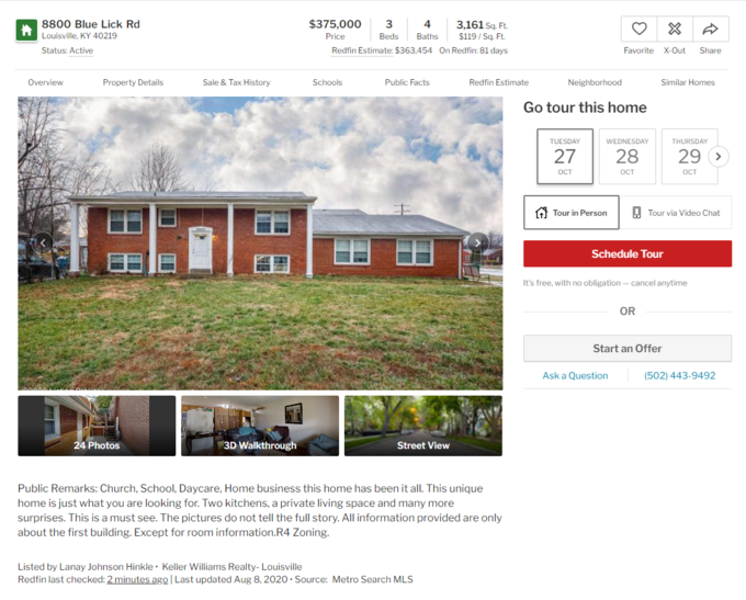 Okay first of all, "church, school, daycare, home business, this home has seen it all" is not a super reassuring description of a home. Literally sounds like the beginning of a horror movie. We also heard that someone was shot at the property not long after the virtual tour went up, so we're willing to bet the 3D walkthrough is totally haunted.