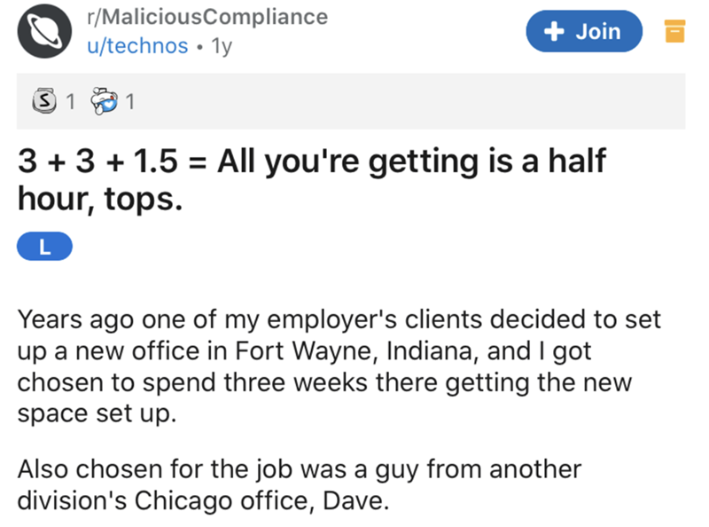 Man oh man, Dave was just a bit of a sleeper hit in this tale of glorious, malicious compliance. What initially looked like a case of a slacker who couldn't be bothered to get into work on time, and not take an excess amount of breaks, ended up manifesting in a showdown between Dave and the company that cleared him for everything in the first place. Good stuff, Dave.