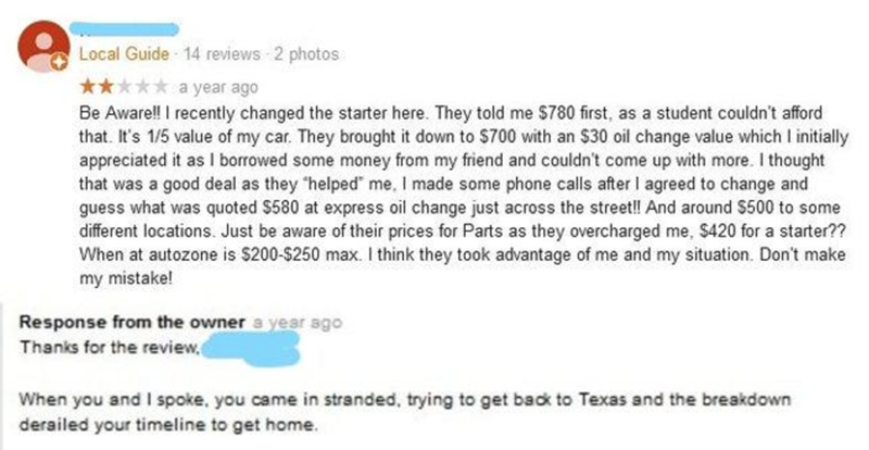 Some people in this world are impossible to please. It's as if they've set out on a completely irrational mission to unleash impossible demands that even when somehow, miraculously met, still warrant toxic bouts of dishonesty and general nonsense. At least this owner was ready to address a rather absurd review of their auto shop.