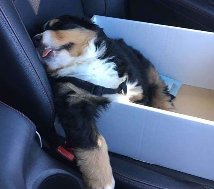 "My boss’ dog has been sleeping like this for 15 minutes now.."