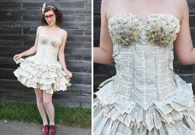 “This dress is literally made out of paper. In case you’re curious, the big words on the front say Spokane Metro, which was the magazine I used to create this piece!”
