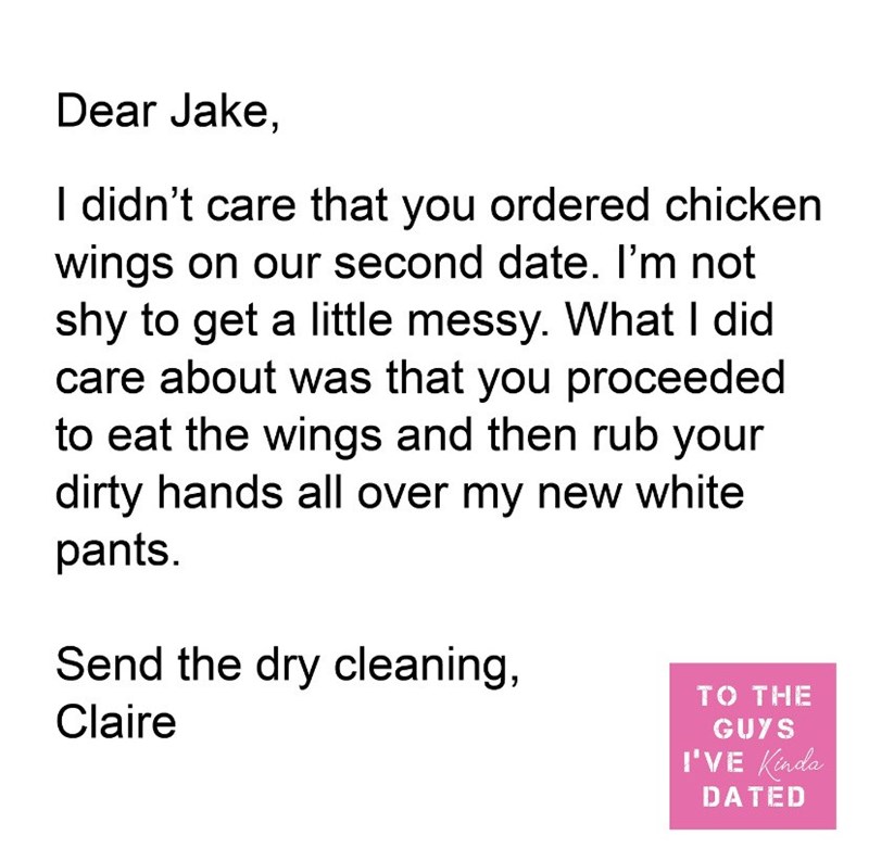 The concept of getting closure is a funny thing. Don't get me wrong; everyone wants to move on after a relationship ends. Being free of any residual emotional attachment or pain is essential in achieving this (speaking from A LOT of experience). But there are many ways to accomplish this, ranging from sitting back and letting karma do its thing to angrily keying your exes car. Nestled healthily somewhere in the middle of those two ends of the spectrum is shaming your disappointing ex-boyfriend on Instagram for the world (and hopefully their moms) to see. That's right, the Instagram account To The Guys I've (Kinda) Dated allows women to get the closure they need by writing open letters to the men (exes or almost exes) who have disappointed them in some way. Each week, we feature a new batch of these hilarious letters for your viewing pleasure. Scroll through, laugh at these ladies' expenses, and then head over to last week's in case you missed them.