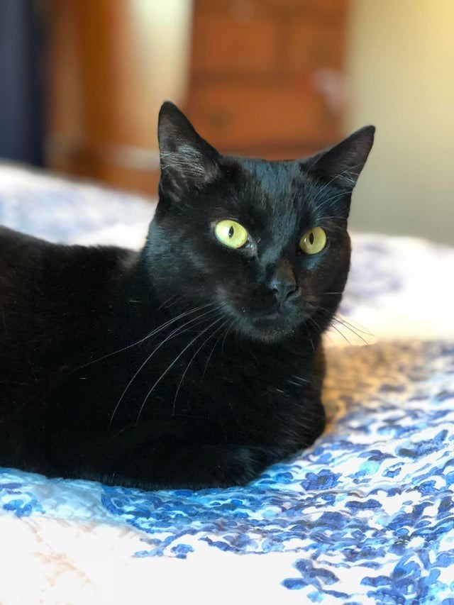 "The day after my cat died, I went to the shelter and told the employee that I’d adopt the cat that had been there the longest. She said, “it’s an older black cat... are you sure?” I was never so sure of anything in my life. Meet Dita Von Panzer"