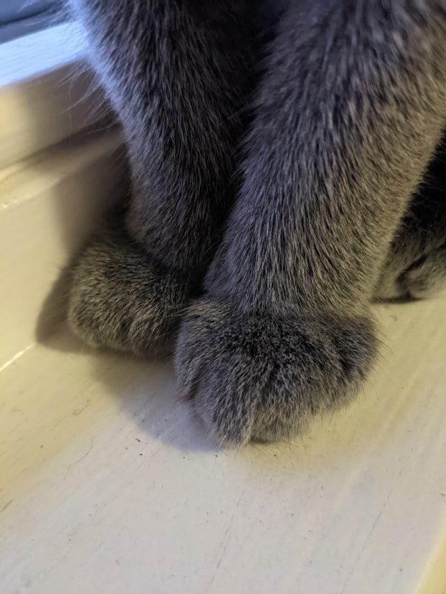 "Sabrina is drinking from the sink, and her kankles are covered with a fine mist of water that she flicked all over the place."
