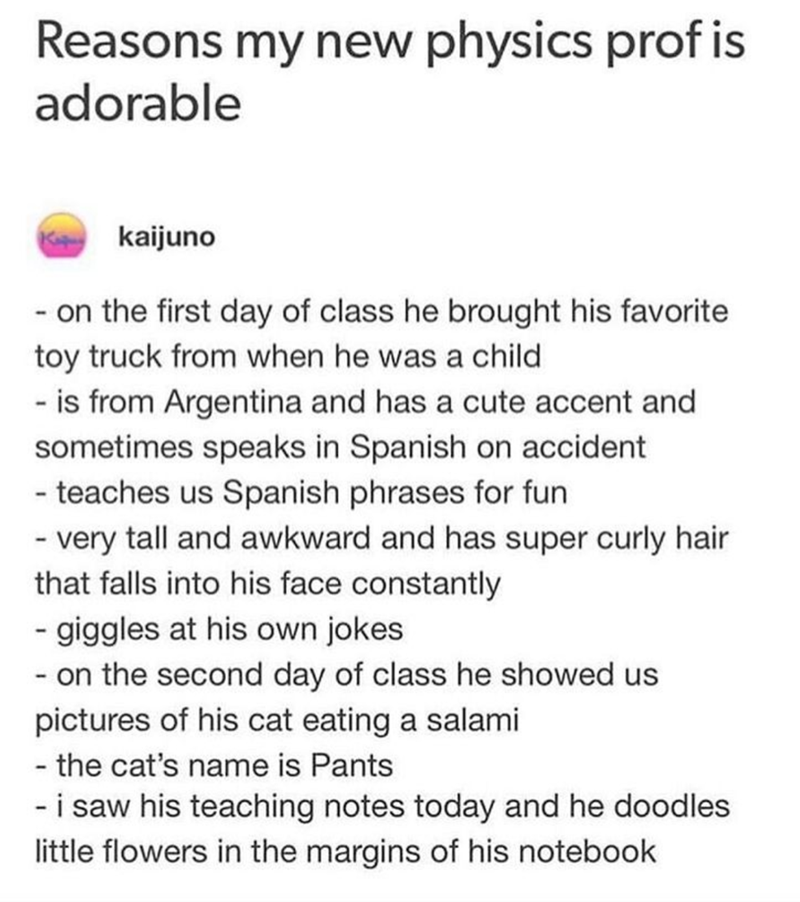 It's not every day that you come across a Tumblr post from a user who honors just how amazing their Physics professor was. For an unfortunate many of us, our time spent in school can end up being much more of a painstaking process, occasionally brought down by teachers that don't bring that life and personality to the stage that students so sorely need to stay engaged. Well, this prof seems like he had the whole thing down to a science. And he wasn't even trying.