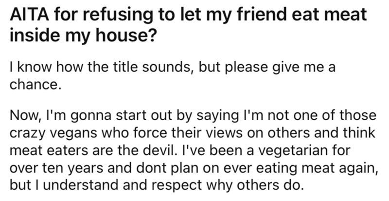 Meat Eater "Friend" Tries To Sneak Meat Into Vegetarian's Meals