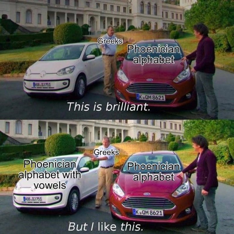 The implication of vowels was not good enough for the Greeks, who altered the Phoenician alphabet by changing some of its symbols and adding unique vowels.