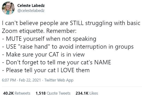 This is one of the only consistently good things about Zoom classes and meetings. The number of animals that we've met over the course of these meetings has made it all kinda worth it. We're not sure why they're so obsessive over coming into camera view whenever they can, but we are very much not complaining. If we have to keep doing this, at the very least, everyone should make sure to bring their cats to the meetings as well.