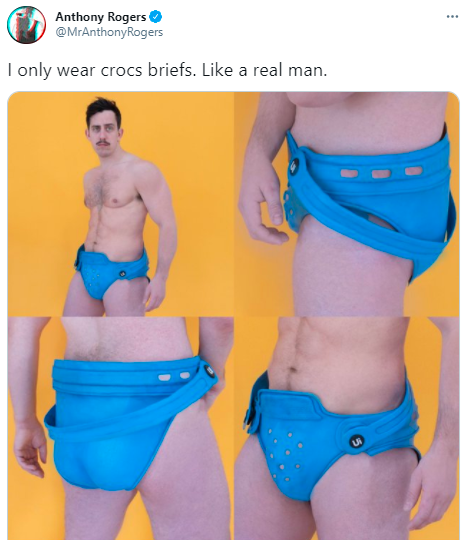 I love how the bright blue of the Croc Briefs bring out his blue eyes. He could have picked any color, yet this one surely suits him best. He planned this color coordination to a T.