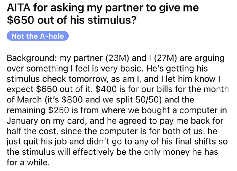 Drama Breaks Out Between Couple Over Stimulus Check