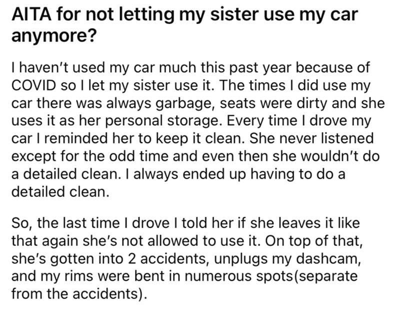 Sister Loses Car Privileges, Says Her Life Is Ruined